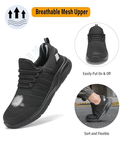 Steel Toe Shoes for Men Safety Puncture Proof Comfy Work Sneakers Lightweight Breathable Non-Slip Construction Shoes