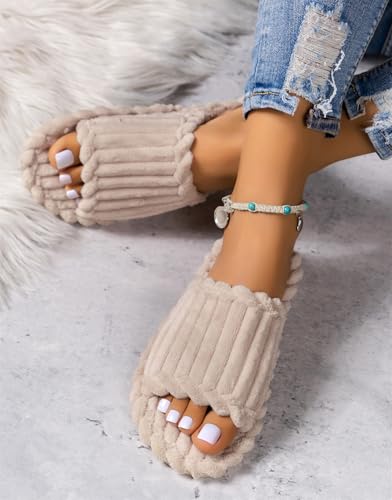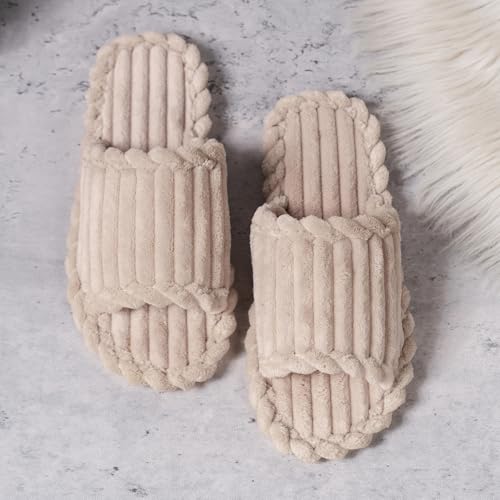 Slippers for Women Corduroy Memory Foam Indoor Slippers Open Toe Slip On Bedroom Comfy House Slide Slipper Shoes
