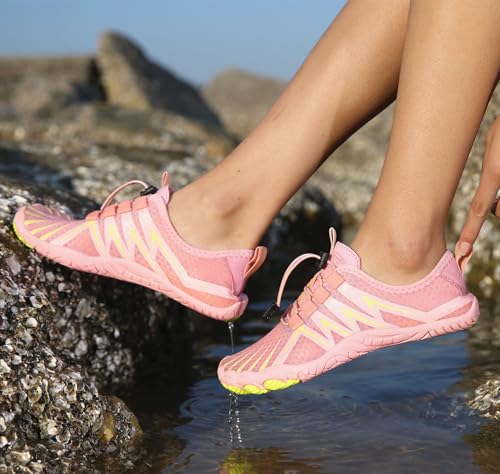 Generic Barefoot Shoes for Women & Men, Wide Toe Box, Breathable, Quick-Dry, Aqua Sports, Beach, River, Athletic, Swim, Surf, Pool, Diving, Hiking, Walking, Pink, US Women's Sizes