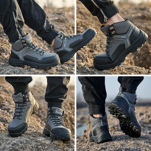Waterproof Steel Toe Boots for Men Wide Width Slip Resistant Work Shoes Lightweight Non Slip Safety Sneakers Construction Composite Toe Working Footwear